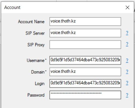 Используйте значения полей Username и Password для регистрации SIP аккаунта на вашем софтфоне (на скриншоте MicroSIP) или АТС (например, Asterisk)